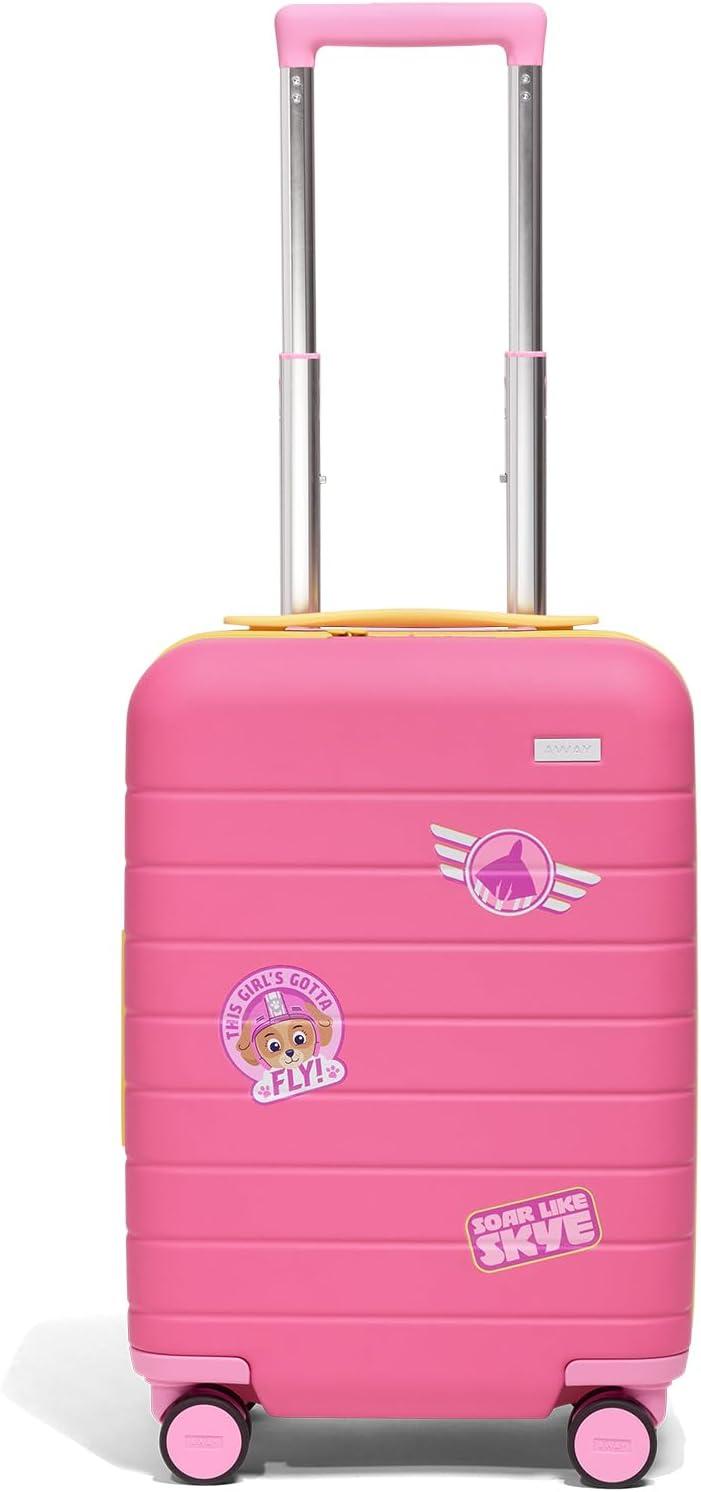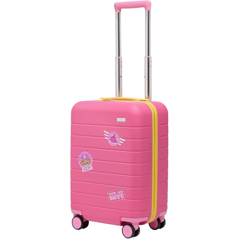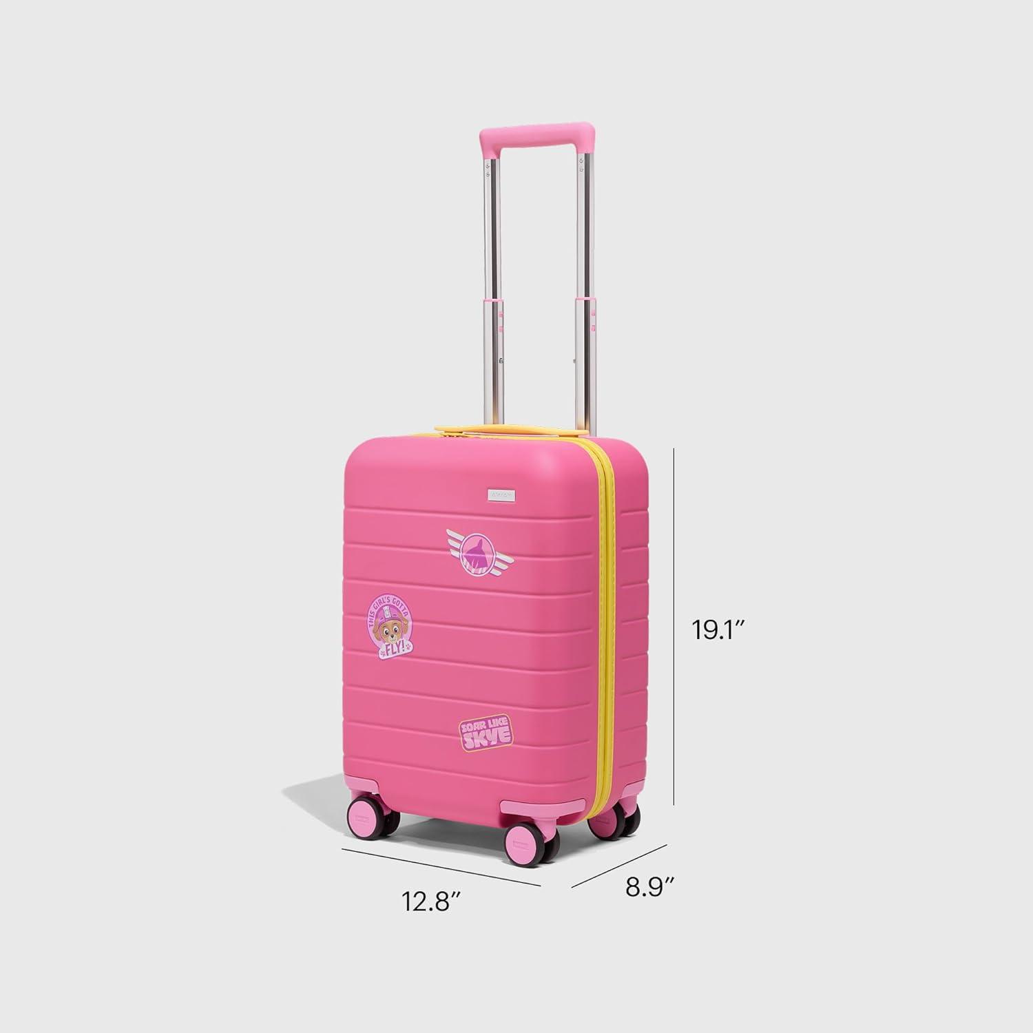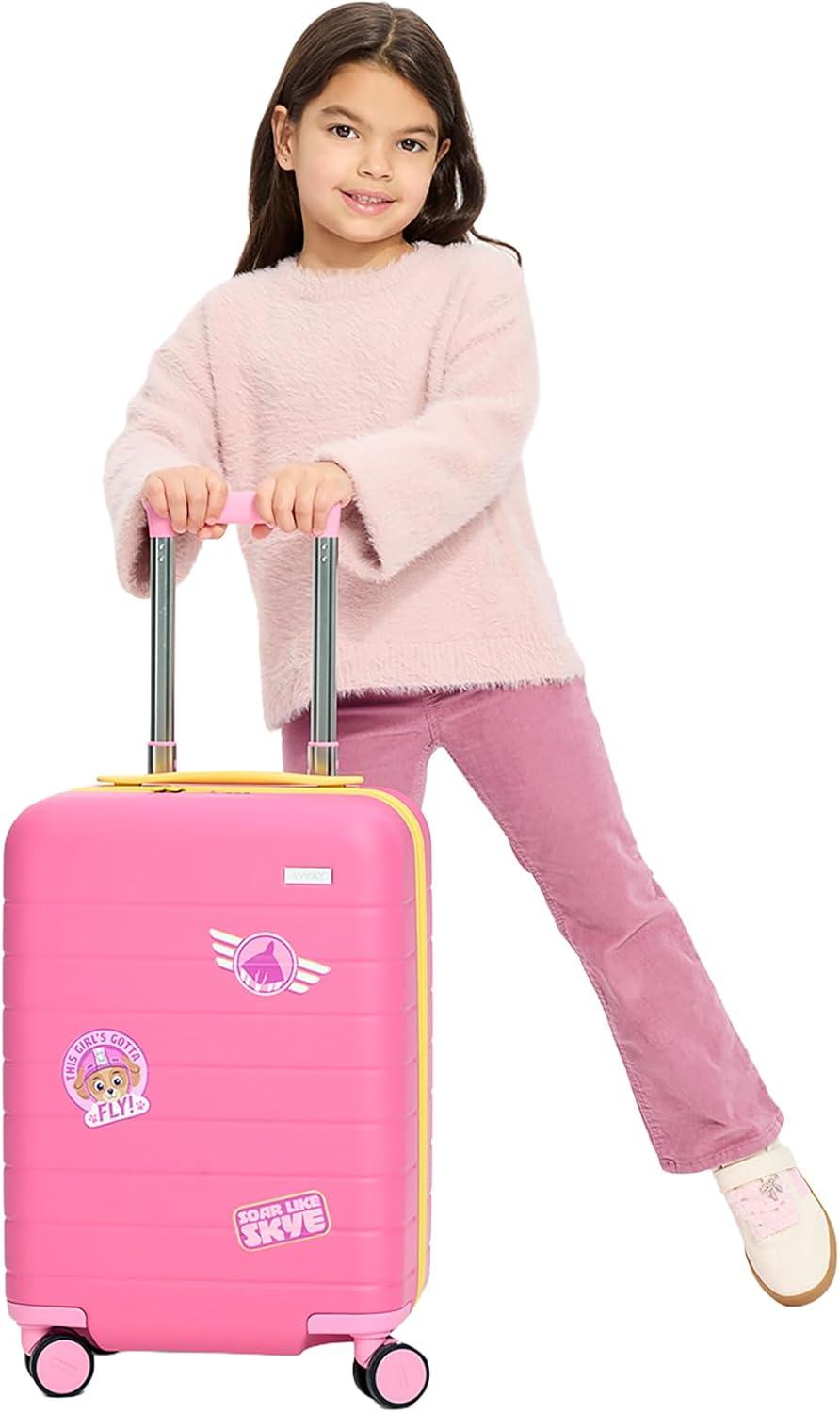 Away PAW Patrol Kids Carry On Luggage, Lightweight Rolling Suitcase for Children, TSA-Approved, Spinner Wheels, Travel Suitcase for Toddlers & Kids, Chase Badge Blue(Skye Pilot Pink)