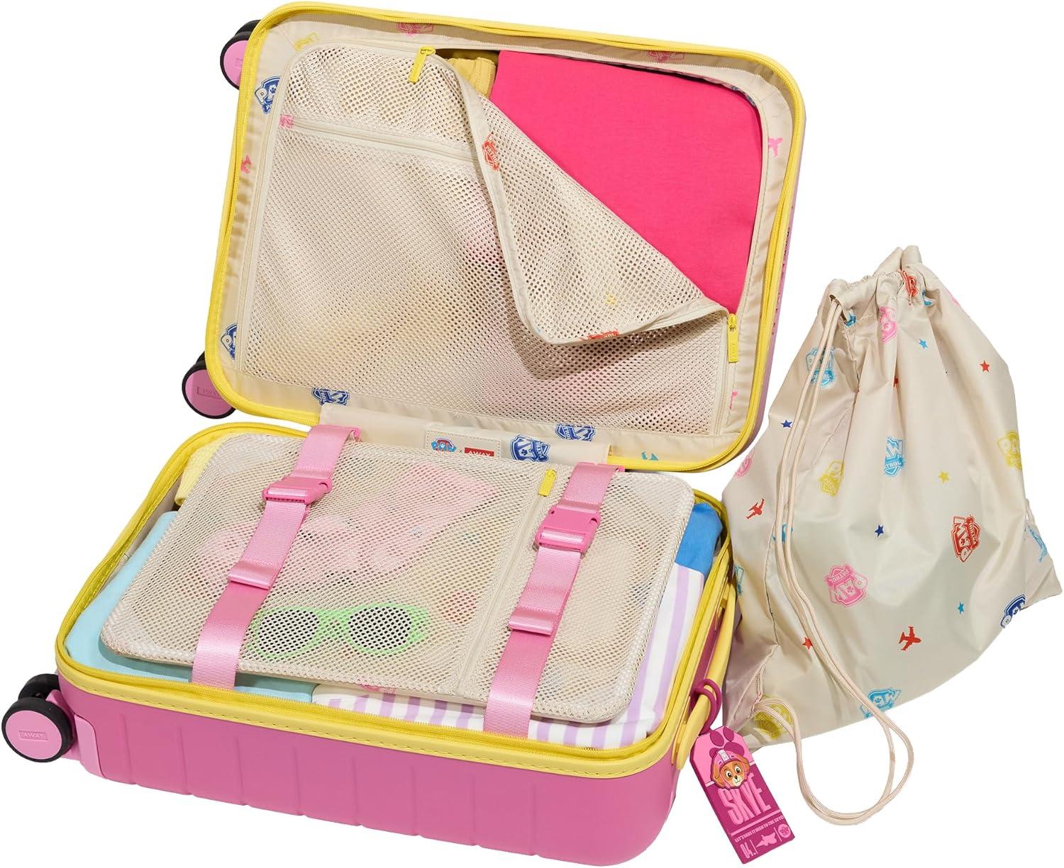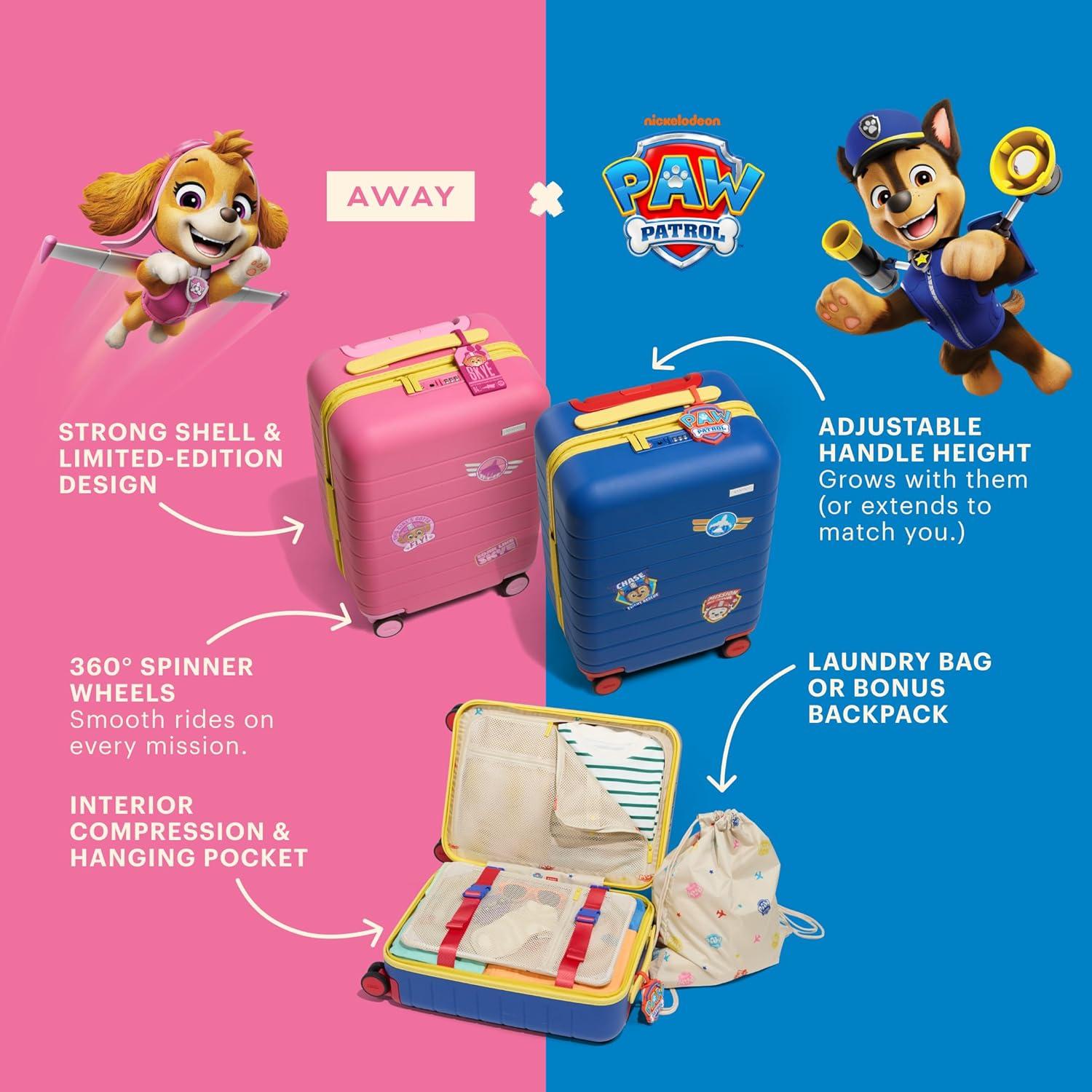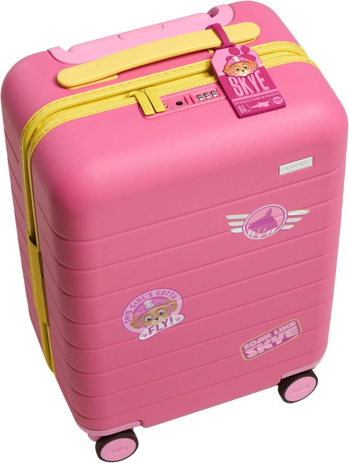 Away PAW Patrol Kids Carry On Luggage, Lightweight Rolling Suitcase for Children, TSA-Approved, Spinner Wheels, Travel Suitcase for Toddlers & Kids, Chase Badge Blue(Skye Pilot Pink)