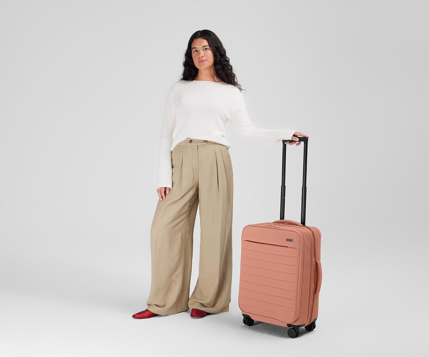 Away Softside Bigger Carry-On Suitcase, 23 Inch Lightweight, Expandable High-Strength Nylon Luggage With Spinner Wheels, Meets Requirements for Most Major Airlines, Clay Pink(Clay Pink)
